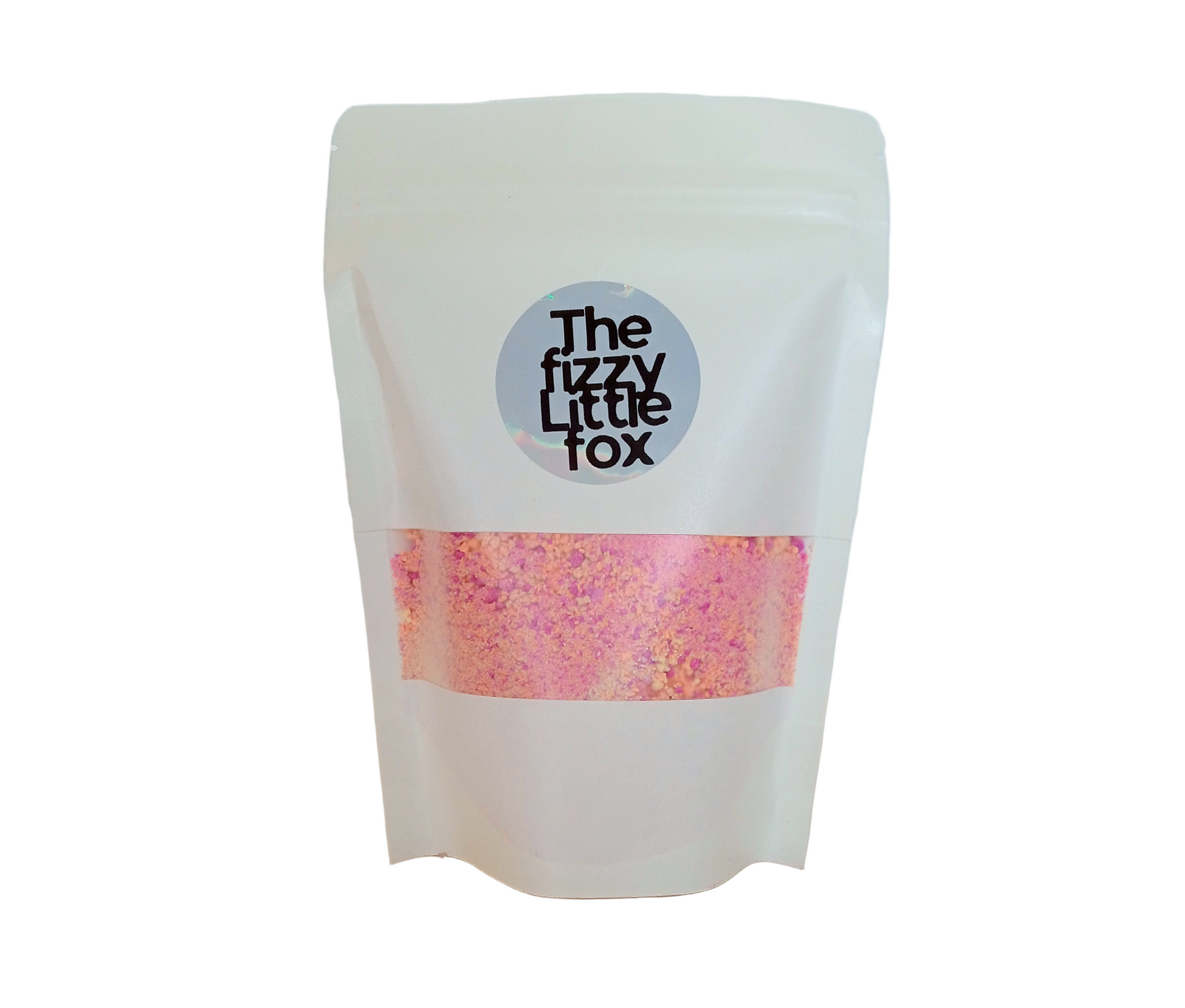 Escape to a tropical paradise with our Passionfruit and Lychee Sorbet Bath Crumble! This vibrant blend captures the tangy, exotic scent of passionfruit combined with the sweet, floral notes of lychee, creating a refreshing and invigorating bath experience.